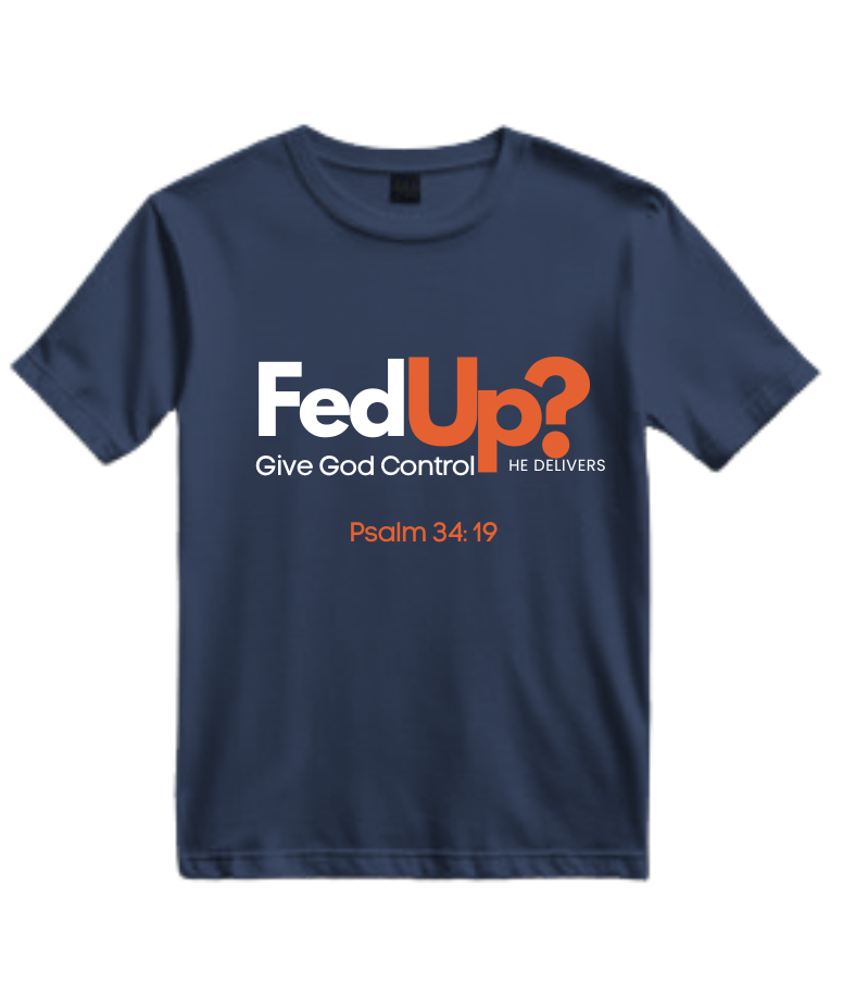 Stand out and share your faith with this bold and uplifting T-shirt. Featuring the message “Fed Up? Give God Control – He Delivers” with a scripture reference from Psalm 34:19, this shirt is a reminder of God’s power to deliver in difficult times.